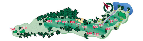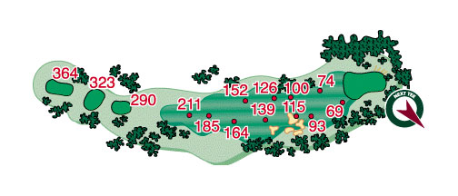 This tough par four is narrow and has a slight left to right layout. Trees and out of bounds to the left make for the number 3 handicap hole on this nine and a particularly tough hole for mid handicap golfers.